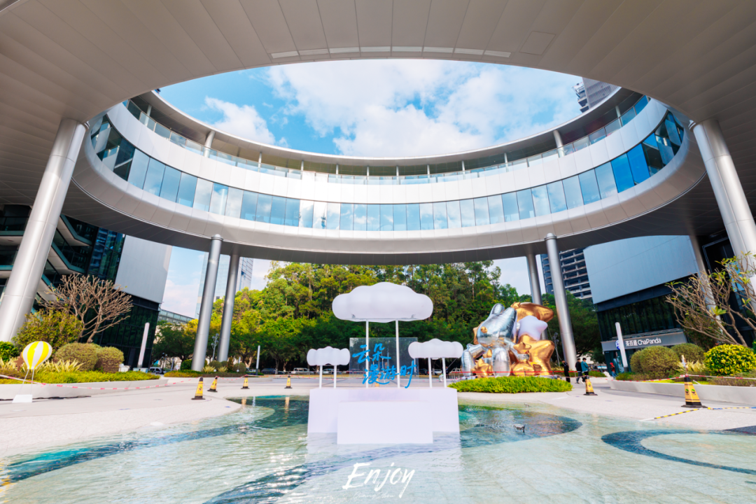 圆环连廊也被打造成“云端穿梭通道”,漫步其间,仿佛进入一段轻盈有趣的“星际旅程”。